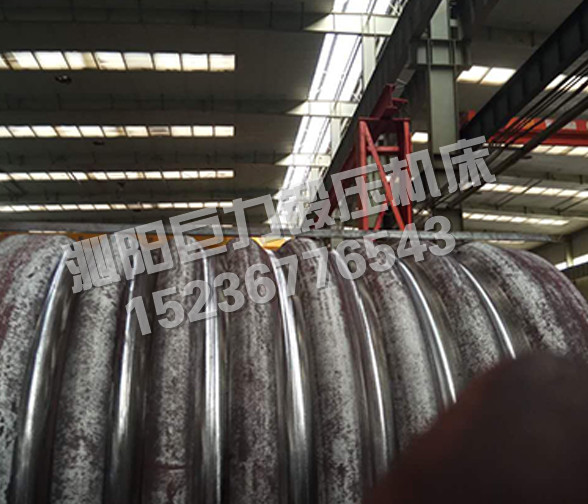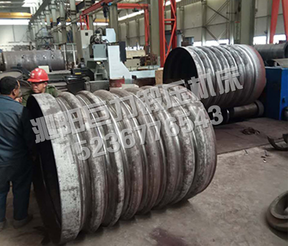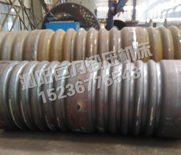 W12NC-系列微控波紋四輥卷板機,既可作為普通四輥卷板機使用,能將金屬板料一次上料,不需調頭即可完成板料端部預彎和卷制成形,剩余直邊小,是卷制圓形、弧形工件的理想設備。該機上下工作輥均為主驅動輥,由液壓馬達、行星減速機驅動,側輥為被動輥,下輥、側輥升降為液壓傳動,升降位移均由計算機控制,自動調平,屏幕數字顯示,同步精度±0.15mm。翻轉軸承體的翻轉和復位,由液壓驅動,上輥尾部裝有平衡機構,可以方便卸出卷制后的工件及筒體。設有移動式獨立操作臺,方便工人使用,設有安全聯鎖裝置,該機功能全,精度高,操作方便,是石油、化工、鍋爐、造船、水電、金屬結構等行業卷制圓形、弧形和錐形工件為理想的機型。該機除了作為普通四輥卷板機使用外,在上下工作輥上加裝模具,還能壓制波紋筒形工件,每組模具采用上下兩片模具組合而成,方便拆裝,而且,各組模具可以自由組合成不同長度,以適應不同寬度的波紋筒壓制。為了在一臺機器上同時滿足內波紋筒和外波紋筒的壓制,上下工作輥設計為同一直徑,針對不同的波形,上下輥上的凸模和凹模可以互換,地降低了產品成本,方便用戶使用。在機器一側的聯接梁上布置有二個擋料裝置,以確保壓制波紋筒時,工件不會跑偏,保證波紋筒的精度符合要求。擋料裝置左右各一個,沿軸向可以通過油缸作用移動一定的距離,以適應不同寬度的波紋筒都能準確定位。