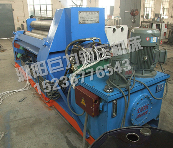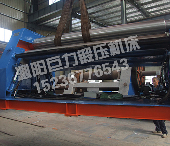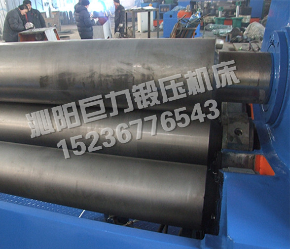 該四輥卷板機與對稱三輥卷板機比較,它可以不借助其它設備模具,直接予彎板材端部,而且剩余直邊較?。凰梢圆皇拱宀恼{頭,而卷成工件。