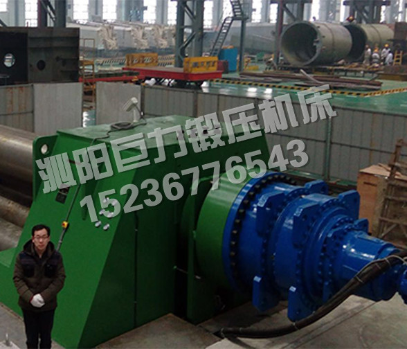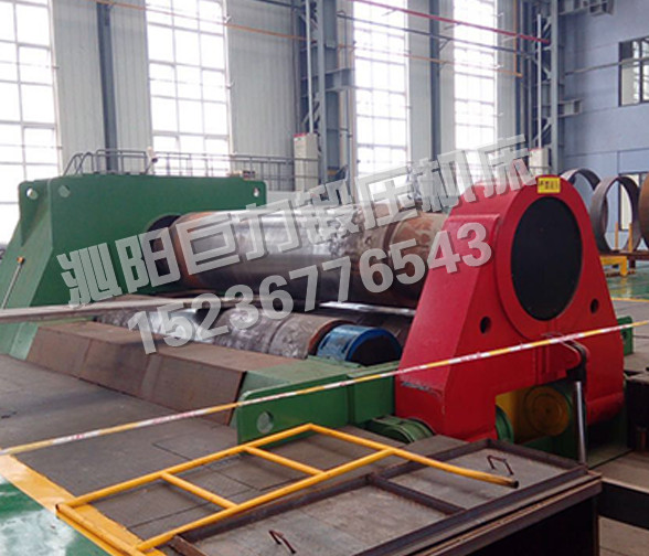 該四輥卷板機與對稱三輥卷板機比較,它可以不借助其它設備模具,直接予彎板材端部,而且剩余直邊較小;它可以不使板材調(diào)頭,而卷成工件。